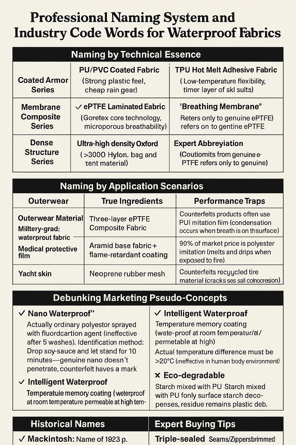 Professionelt navnesystem og industrikodeord til Vandtætte stoffer